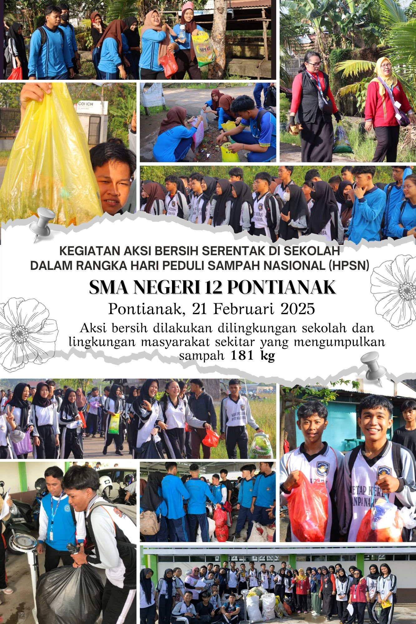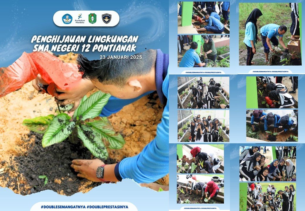 Penghijauan sekolah adalah kegiatan menanam pohon dan tanaman hias di lingkungan sekolah untuk menciptakan suasana yang asri, bersih, dan sehat. Penghijauan sekolah juga bertujuan untuk menanamkan kesadaran siswa akan pentingnya menjaga lingkungan. Kegiatan ini dilakukan seluruh warga sekolah di SMAN 12 Pontianak,Penghijauan sekolah penting dilakukan karena dapat: Mengurangi pemanasan global, Meningkatkan kualitas udara, Menciptakan suasana belajar yang lebih segar dan menyenangkan, Menumbuhkan kepedulian siswa terhadap lingkungan