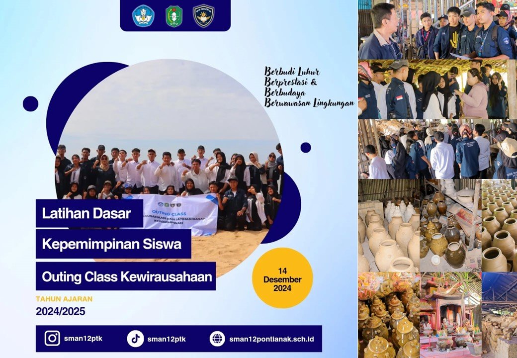 Singkawang - SMAN 12 Pontianak Dalam mengembangkan jiwa kewirausahaan di pengurus OSIS dan MPK melaksanakan kegiatan Outing Class yang dilaksanakan di pembuatan kramik singkawang dengan mengusung kewirausaan para pengurus OSIS dan MPK melakukan surfe langsung ke lapangan dari sistem pengolahan hingga penjualan kegiatan ini berkerjasama dengan pembiuatan keramik yang terkenal di Kota Singkawang di daerah sekok Kalimantan Barat.